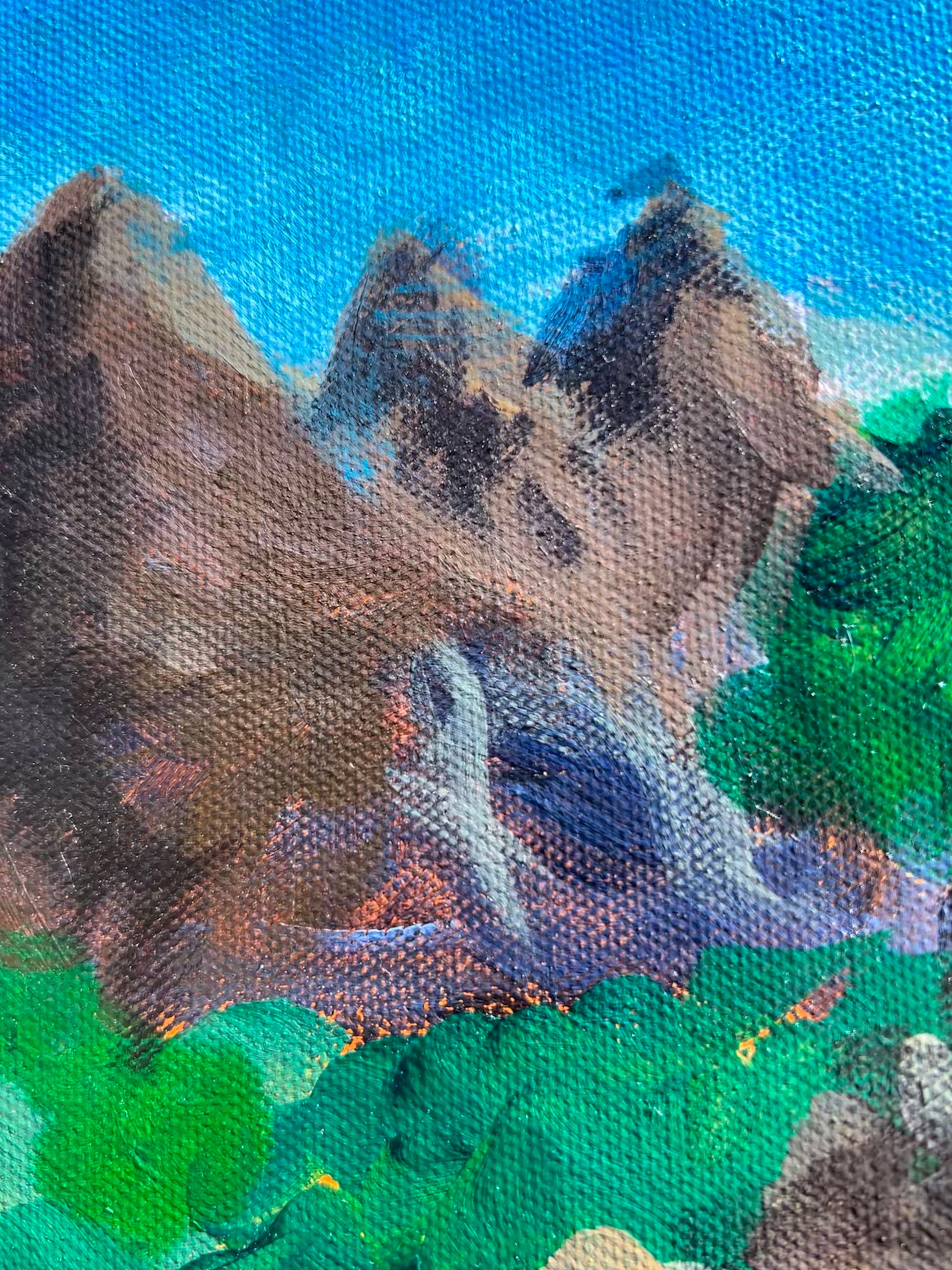 In this painting, a figure kneels close to the earth—hands near a new bloom—surrounded by greenery, small flowers, and an open sky. It captures a private moment of tending, where growth isn’t rushed; it’s practiced. For me, this piece symbolizes resilience and perseverance—the slow, steady progress that happens in seasons, not overnight.